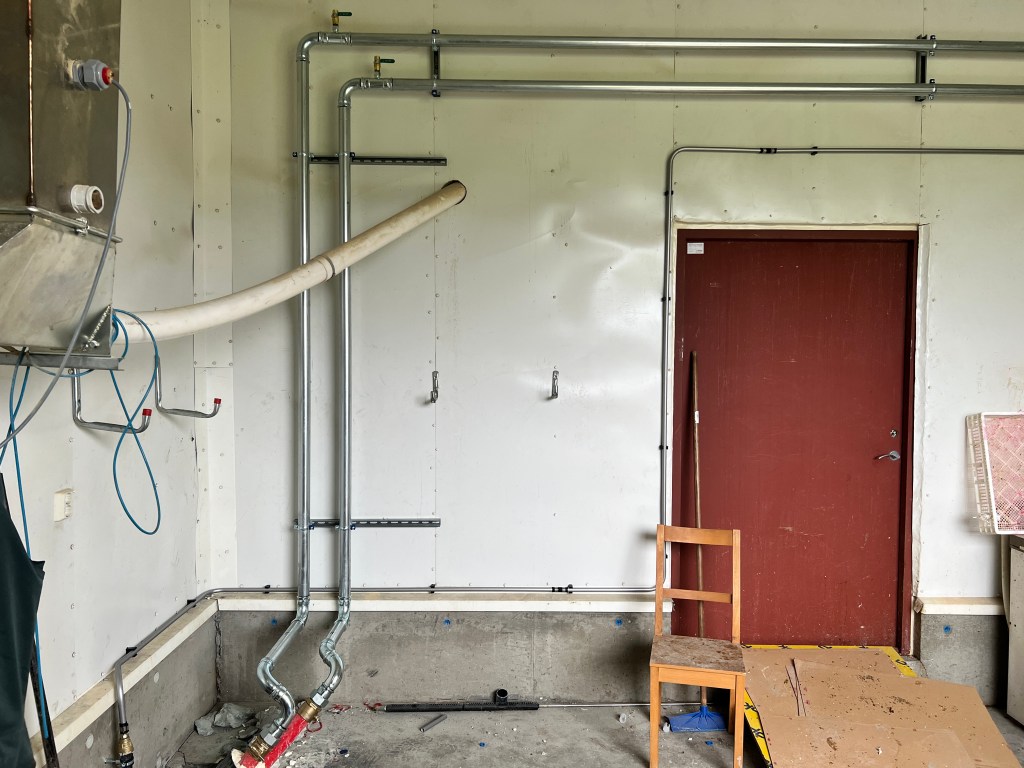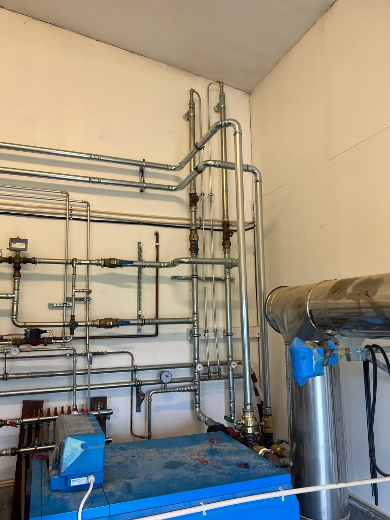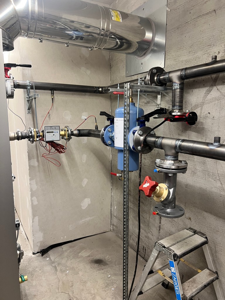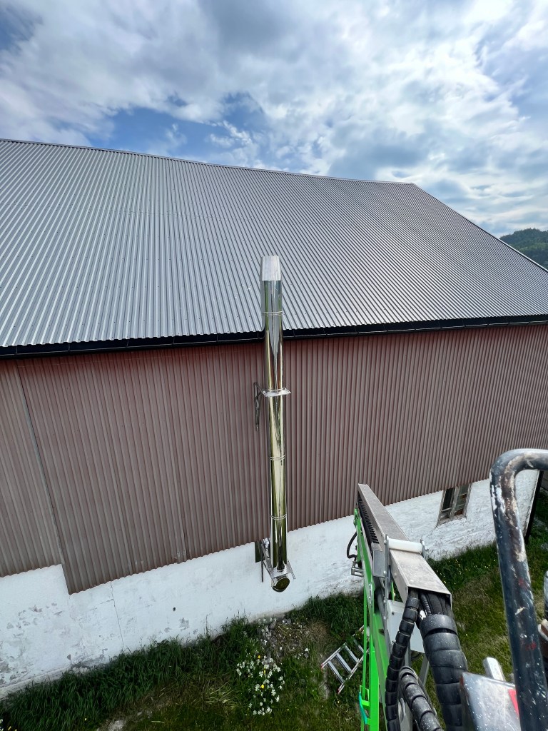 På Øysand i Melhus kommune har vi montert et 250kW flisfyringsanlegg for Fjøssystemer AS. Anlegget forsyner et kyllinghus og to bolighus. Rørlegging og alt av utstyrsmontasje som sirkelmater og skorstein er utført av oss.
